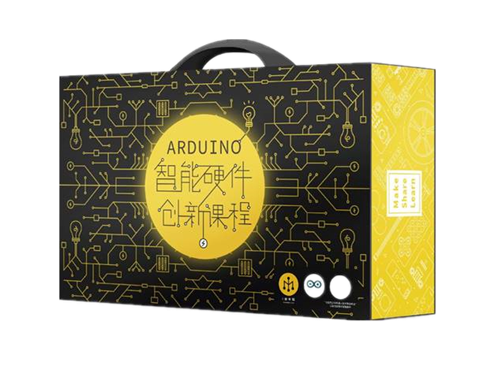 含1本 “智能硬件项目教程--基于Arduino”教材,正版Arduino Uno R3, “i创学院”Arduino 扩展板,LED灯、按键、电位器、温度传感、蜂鸣器、交通灯、语音、马达控制、光敏电阻、循迹、避障、超声波、红外遥控等电子模块,还有舵机、马达、智能小车车轮和减速马达、及其它课程配套元器件、线材和结构件。所有模块均有防范插接口,保质期半年。